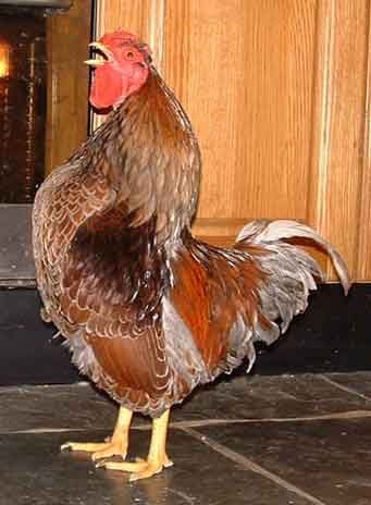 A blue laced Wyandotte cockerel who has just about recovered from a bad infestation of Northern Fowl  mite.